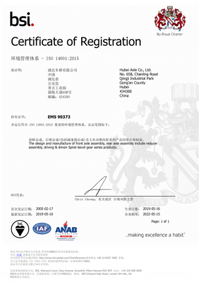 業內率先通過英國BSI公司的ISO9001/TS16949(質量)、ISO14001(環境)和OHSAS18001(職業健康安全)三項標準認證;