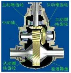 發(fā)動(dòng)機(jī)的動(dòng)力經(jīng)過變速器輸出后.必須經(jīng)過主減速器總成和差速器才能傳遞車輪.對(duì)于前輪驅(qū)動(dòng)的汽車,如我們常見的轎車,主減速器和差速器設(shè)計(jì)在變速器殼體內(nèi):對(duì)于后輪驅(qū)動(dòng)的汽布.如客車和貨車,主減速器和差速器安裝在后橋內(nèi)。