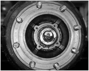 e) 沿水平方向拉彈簧秤,使輪轂制動鼓轉(zhuǎn)動90°以上,記下彈簧秤的平均讀數(shù)預(yù)緊載荷。