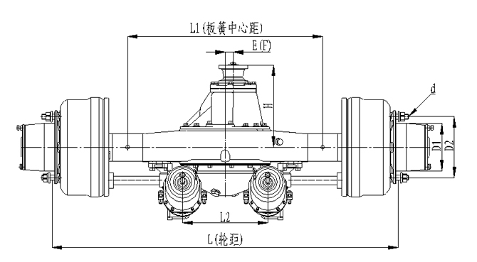 1.橋殼加強型設(shè)計,承載能力強;2. 采用專用客車制動鼓(帶散熱孔及散熱筋)和摩擦片,具有散熱效果好,使用壽命長的優(yōu)點;3. 可配裝空氣懸架系統(tǒng);4.可配裝緩速器;5.車輪輪輞定位方式可采用球面定位或止口定位;6.輪距、板簧距可靈活調(diào)整;
